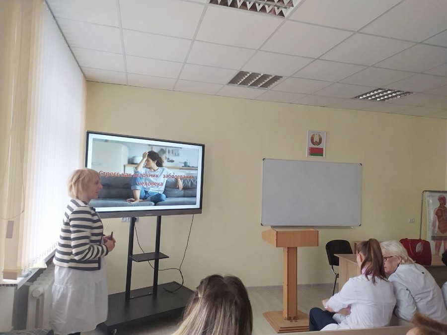 С докладом и презентацией на тему «Стресс как источник заболевания человека» также выступила преподаватель Губенко Мария Васильевна. Она предложила слушателям рассмотреть причины возникновения стресса, его признаки и возможные последствия. Актуальность вопроса вызвала живой интерес у присутствующих коллег. Преподаватели активно включились в обсуждение вопросов профилактики и снятия стресса. Актуальность темы никого не оставила равнодушным. После выступления Мария Васильевна пожелала всем здоровья и психологического комфорта!