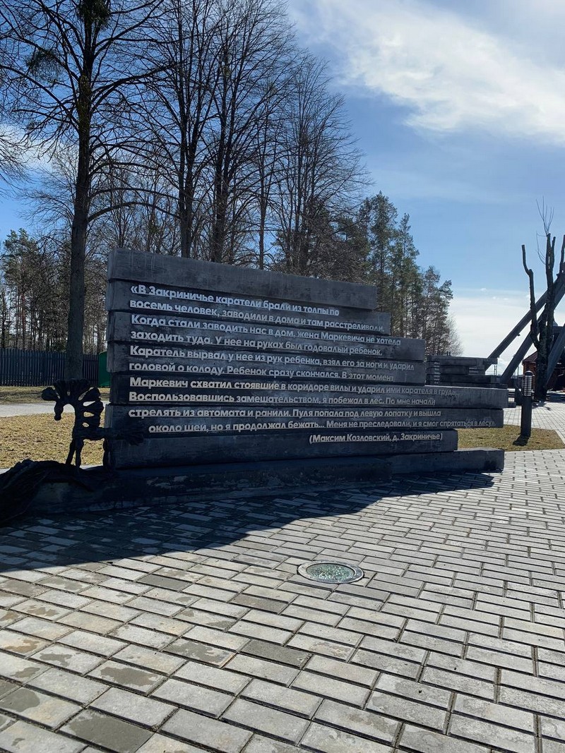 «Эту поездку я считаю для себя очень познавательной. Больше всего запомнился мемориальный комплекс в деревне Усакино. Во время войны Кличевщина была центром борьбы белорусских партизан. В память об их подвигах в 1985 году был открыт этот мемориальный комплекс. Он включает в себя партизанское кладбище (18 братских могил), скульптуру воина, мемориальный знак, партизанский лагерь с восстановленными землянками, кухней, колодцем, кострищем. Это действительно очень интересное место, про которое мало кто знает. Наверняка потому, что находится оно далековато и не так доступно, как другие. Но побывать здесь нужно обязательно, так как данный объект служит тем ярким и запоминающимся местом, которое показывает, как белорусские партизаны выживали во время войны. Очень интересное место!», – Листопадов Артём, группа 3ЛД20.