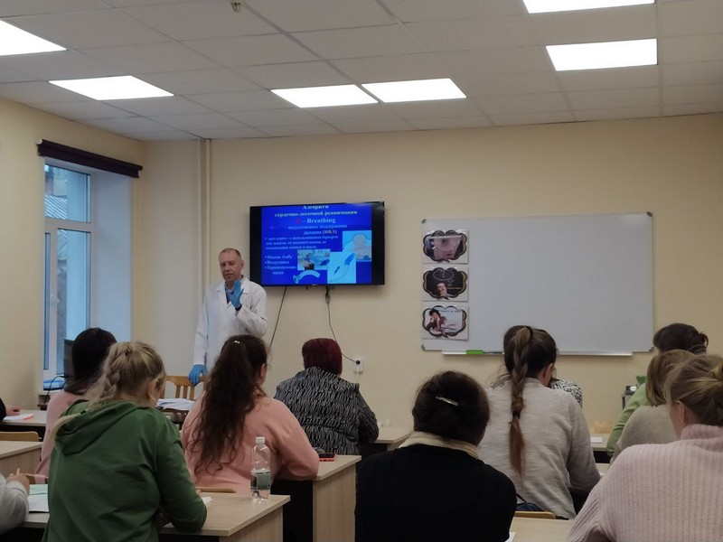 20 апреля 2022 года преподаватель отделения повышения квалификации и переподготовки Вечёра Виталий Иванович провел открытое учебное занятие по образовательной программе повышения квалификации «Организация работы медицинской сестры хирургического отделения» по теме «Основы реаниматологии».