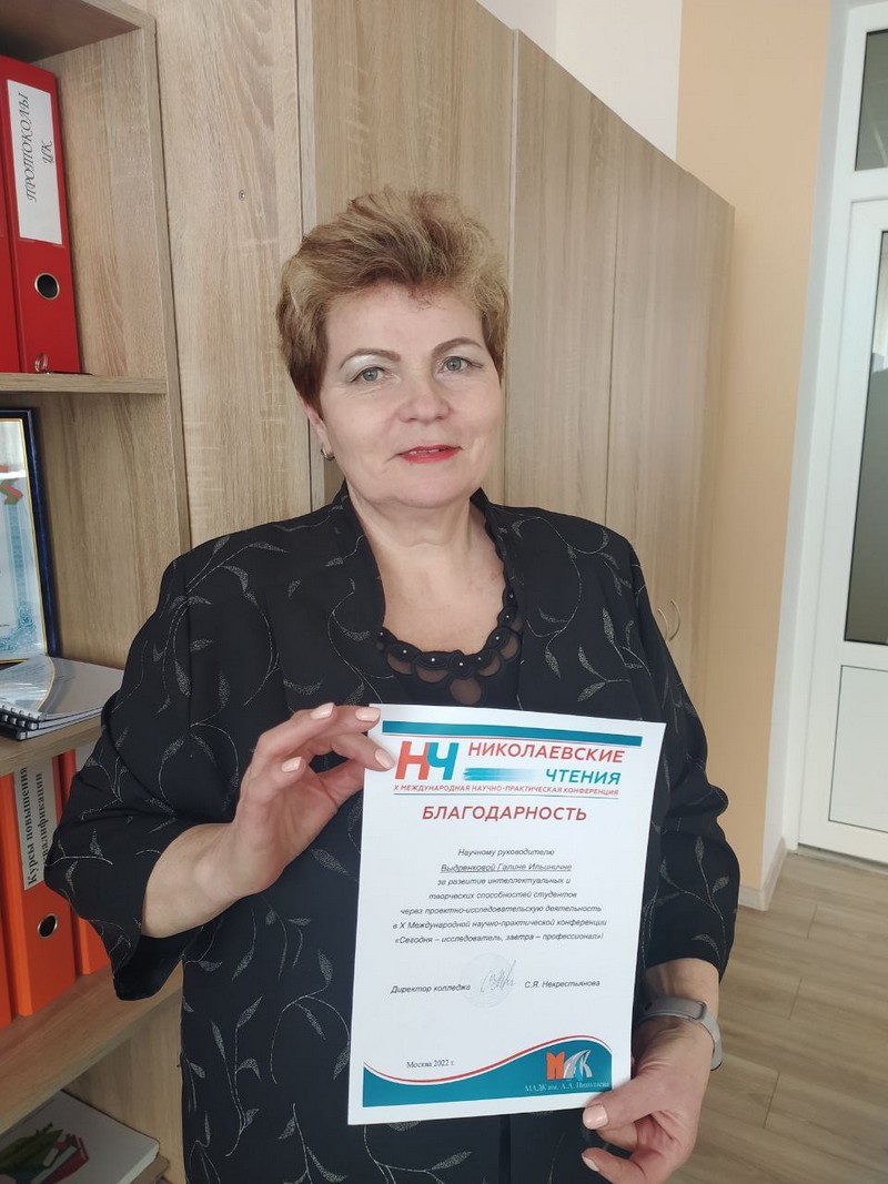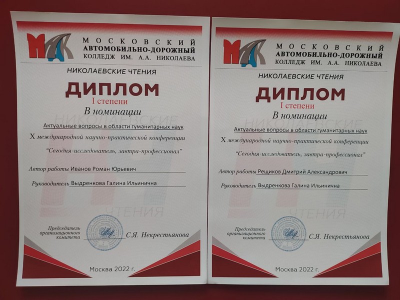 В начале апреля 2022 года в ГБП ОУ «Московский автомобильно-дорожный колледж им. А.А. Николаева» проходила Х Юбилейная Международная очно-заочная научно-практическая конференция по теме: «Сегодня – исследователь, завтра – профессионал» в рамках проекта «Николаевские чтения – 2022». Более 500 проектов было представлено на конференцию из разных уголков России, Беларуси и Казахстана.