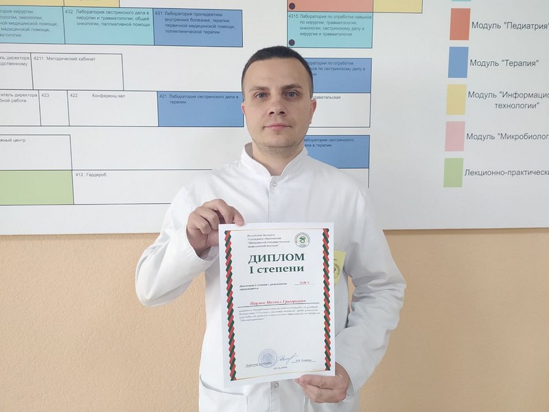 Лучший результат по итогам олимпиады показал Наумов Михаил, учащийся группы 1СД21 – Диплом I степени! По словам Михаила, вопросы гигиены и экологии всегда были ему интересны, а за время учебы в колледже он приобрел много дополнительных знаний и расширил свой кругозор. К слову, Михаил уже имеет высшее образование: он окончил Академию управления при Президенте Республики Беларусь, но на данный момент принял решение сменить направление деятельности и получить медицинское образование.