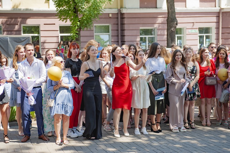 30 июня в учреждении образования «Могилевский государственный медицинский колледж» состоялось торжественное вручение дипломов выпускникам 2022 года. На прилегающей территории учебного корпуса № 4 собрались педагогические работники колледжа и выпускники специальностей «Лечебное дело», «Сестринское дело», «Фармация», «Медико-диагностическое дело» и все те, кто захотел разделить с выпускниками радость этого торжественного и долгожданного события. В ходе мероприятия прозвучали искренние и добрые слова напутствия от директора колледжа Владимира Владимировича Рыжкова, генерального директора Могилевского РУП «Фармация» Романенко Елены Антоновны, заведующего отделом по организационной работе областного комитета Белорусского профессионального союза работников здравоохранения Вероники Александровны Хотамцовой, а после вручения дипломов под аплодисменты всех присутствующих теперь уже дипломированные специалисты отправили в небо воздушные шары, загадав самые сокровенные желания.