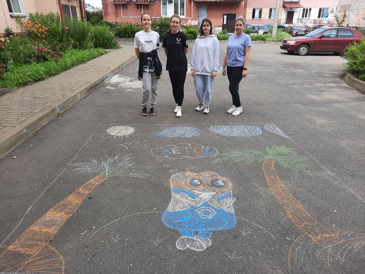 14 июля рабочий день волонтерского отряда закончился на веселой ноте. На территории возле общежития прошел конкурс рисунков на асфальте «Мое разноцветные лето!». Девушки увлеченно и творчески подошли к заданию, превращая серый асфальт в сказочный мир. Все рисунки получились яркими, а главное добрыми. В итоге победила дружба, и каждый художник получил сладкий приз. Мероприятие подарило всем отличное настроение и много позитива!