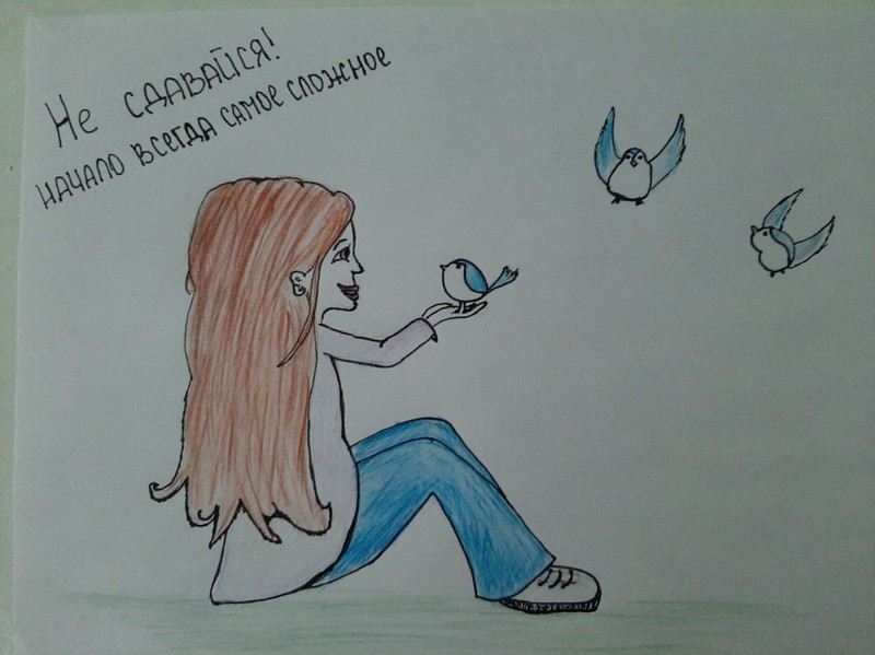 На многих рисунках написаны жизнеутверждающие высказывания, настраивающие на позитивный лад.