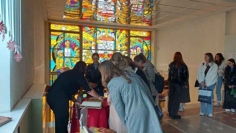 В рамках Недели единства 14 сентября 2022 года в День Памяти и истории учащиеся группы 1МДД22 вместе с куратором Вощило Юлией Юрьевной и воспитателем общежития Костюченко Ритой Станиславовной посетили Могилевскую областную библиотеку им. В.И. Ленина, краеведческий отдел, где ознакомились с книжной экспозицией «Слова гучыць праз стагоддзі». Экспозиция представлена несколькими разделами. Раздел «Праваслаўе – падмурак беларускай нацыі» посвящен белорусским просветителям Кириллу Туровскому, Ефросинье Полоцкой, Симеону Полоцкому. На экспозиции представлен один из самых значимых памятников книжной культуры Беларуси – факсимильное издание рукописи Полоцкого Евангелия ХII века.