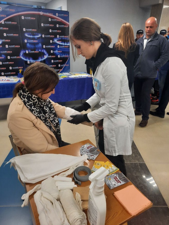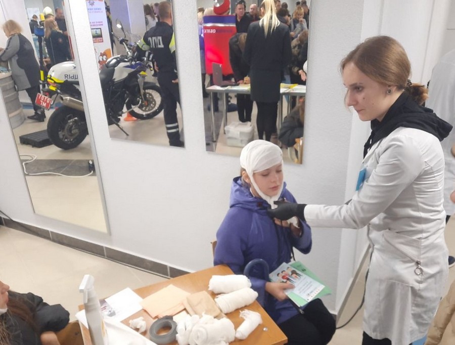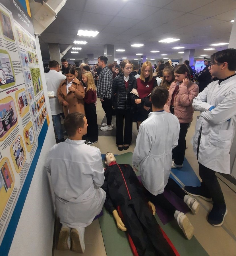 В рамках Дня безопасности, прошедшего 22 сентября 2022 года в физкультурно-оздоровительном комплексе «Н2О», учащиеся Могилевского медицинского колледжа представили интерактивную площадку «Будь первым!». Ребята продемонстрировали учащимся школ города Могилева как правильно себя вести в неотложных и чрезвычайных ситуациях, как провести сердечно-легочную реанимацию, какие виды перевязок существуют и как правильно их выполнять, как провести освобождение дыхательных путей у ребенка, а также продемонстрировали видеоролик «Основы первой медицинской помощи». Учащиеся фармацевтического отделения рассказали школьникам о ядовитых растениях, произрастающих в Могилевской области, а также познакомили с растениями, входящие в состав витаминных сборов, особенно необходимых для поддержания организма в период ОРИ. Наши учащиеся загадывали детям загадки о полезных ягодах и предлагали их продегустировать.