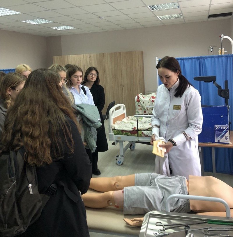 29 сентября 2022 года гостями нашего колледжа стали учащиеся 10 класса химико-биологического профиля гимназии №1 г. Могилева. Все они на данный момент находятся перед одним из ответственных выборов, определяющих весь дальнейший жизненный путь человека, – выбор профессии. Чтобы помочь будущим абитуриентам расширить их знания о медицинских специальностях, наши сотрудники и учащиеся организовали экскурсию для ребят по лабораторно-практическому корпусу, где обучаются учащиеся специальностей «Лечебное дело» и «Сестринское дело», и фармацевтическому отделению для будущих фармацевтов, фельдшеров-лаборантов и фельдшеров-гигиенистов, эпидемиологов. Будущим абитуриентам учащиеся и преподаватели рассказали и показали все, начиная от оснащения лабораторий и заканчивая расписанием и проведением учебных занятий. На все поставленные вопросы отвечали заместитель директора по учебно-методической работе Ольга Викторовна Пойда и ответственный секретарь приемной комиссии Ольга Андреевна Никитенко.
