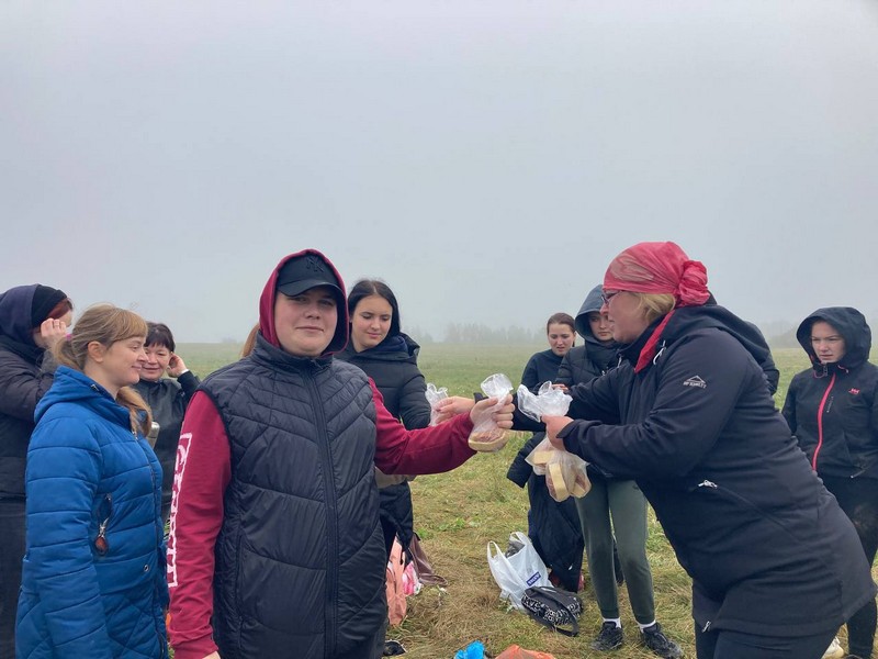 И вот настал момент сбора урожая! С огромным энтузиазмом спорилась работа! Девушки старались качественно и быстро собирать морковь, заполняя пустые ведра, а ребята живо относили их в предназначенные для сбора контейнеры. Позже у нас был перекус, ведь, как гласит народная мудрость: «Хороший работник – сытый работник». Бутерброды и горячий чай с пряниками, пришлись кстати, за что хотелось сказать огромное спасибо профсоюзной организации и нашему колледжу. Было вкусно!
