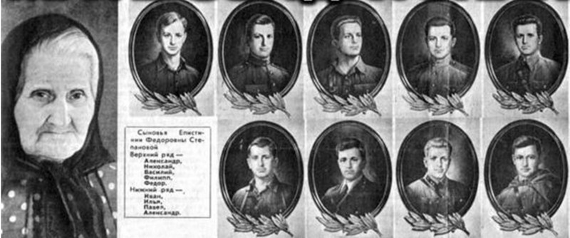 Маршал Советского Союза А. А. Гречко и генерал армии А. А. Епишев в 1966 году писал Епистинии Федоровне Степановой: «Девять сыновей вырастили и воспитали Вы, девять самых дорогих для Вас людей благословили на ратные подвиги во имя Советской Отчизны. Своими боевыми делами они приблизили день нашей Великой Победы над врагами, прославили свои имена. …Вас, мать солдатскую, называют воины своей матерью. Вам шлют они сыновнее тепло своих сердец, пред Вами, простой русской женщиной, преклоняют колени».
