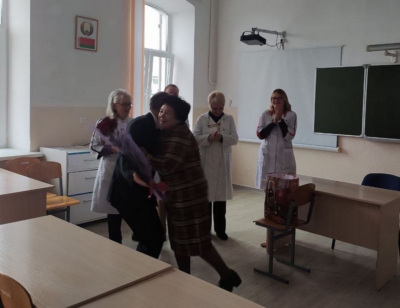 Поздравить Юлию Петровну пришла вся администрация, директор колледжа Рыжков Владимир Владимирович вручил Почетную грамоту и цветы. Поздравления звучали от сотрудников ЦК № 3, заместителя директора по воспитательной работе Костусевой Светланы Николаевны, заместителя директора по производственному обучению Савич Оксаны Вячеславовны, которые являются бывшими учащимися Юлии Петровны, и других сотрудников.