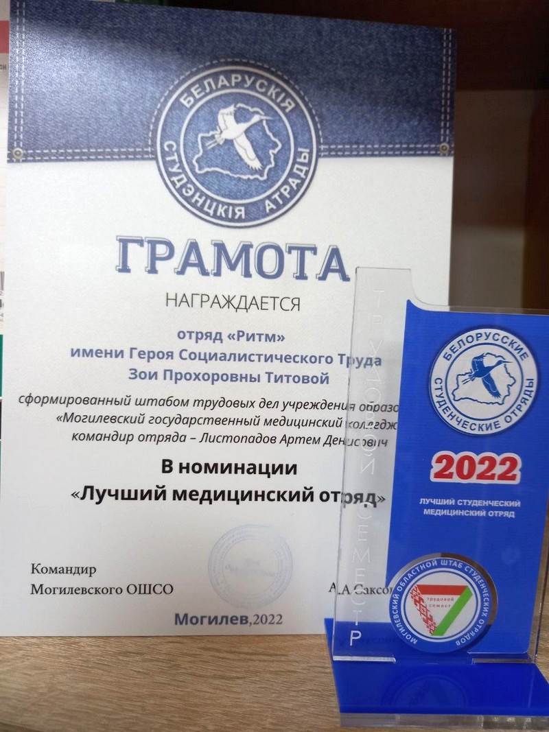 4 ноября 2022 года бойцы студенческого медицинского отряда «Ритм» приняли участие в областном закрытии третьего трудового семестра «Мой трудовой», который проходил на базе Белорусско-Российского университета.