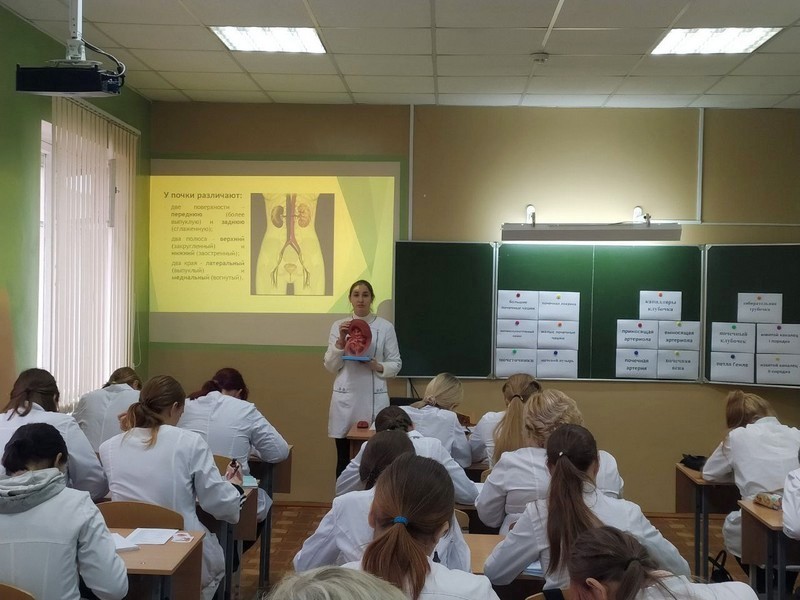 Преподаватель Могилевского медицинского колледжа Серякова Марина Михайловна 14 ноября 2022 года провела открытое учебное занятие в группе 2СД22 по учебному предмету «Анатомия и физиология» по теме «Мочевая система: почки, мочеточники, мочевой пузырь, мочеиспускательный канал».