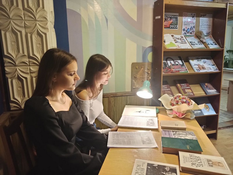 У сувязі з гэтай падзеяй, у чытальнай зале бiблiятэкi была арганiзавана лiтаратурная гасцёўня «Коласаўскiя чытаннi», у якой прынялi ўдзел навучэнцы розных курсаў медыцынскага каледжу. Гучалi вершы «Спадчына», «Мужык», «Мой родны кут», «Святы Ян», «Бывае музыка i ў стуку». Вершы чыталi Карытка Марына, гр. 2ЛД20, Херавец Алiна, гр. 1Ф22, Балтрушайтице Анета, гр. 6Ф22, Калачова Тамара, гр. 2ЛД21.