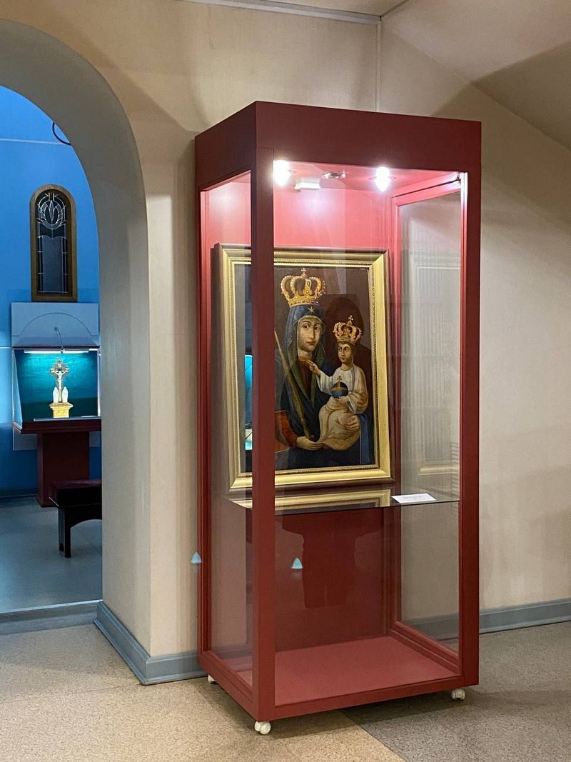 Главными экспонатами являются прижизненный портрет святителя Георгия Конисского, печатника, просветителя и литератора Спиридона Соболя и печатника Петра Мстиславца. В экспозиции также представлены старинные иконы.