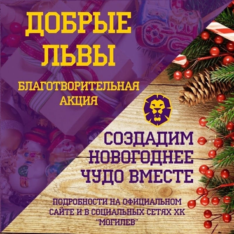 Государственное учреждение «Хоккейный клуб «Могилев», совместно с болельщиками хоккейной команды, продолжает ежегодную, традиционную, новогоднюю благотворительную акцию «ДОБРЫЕ ЛЬВЫ», направленную на поддержку многодетных семей города Могилева.