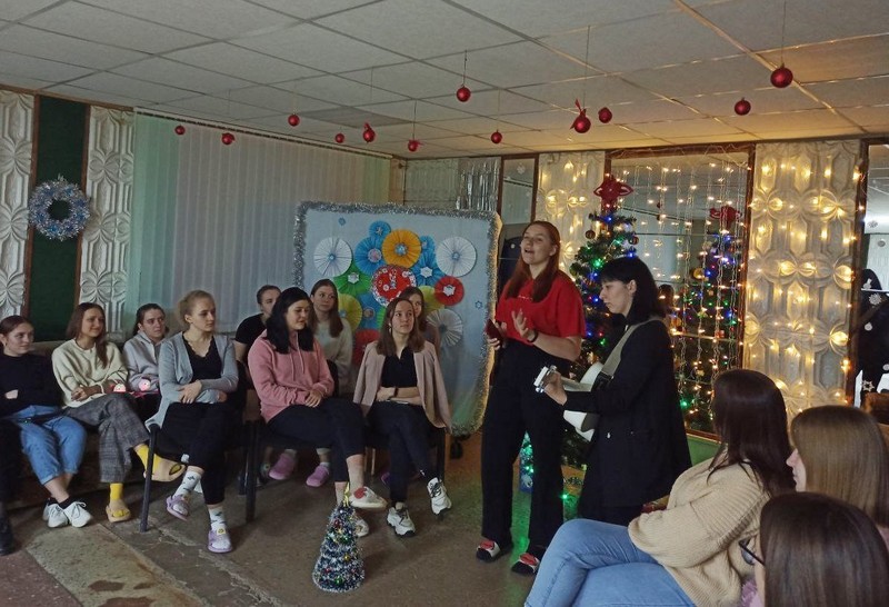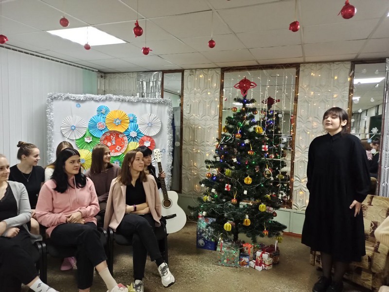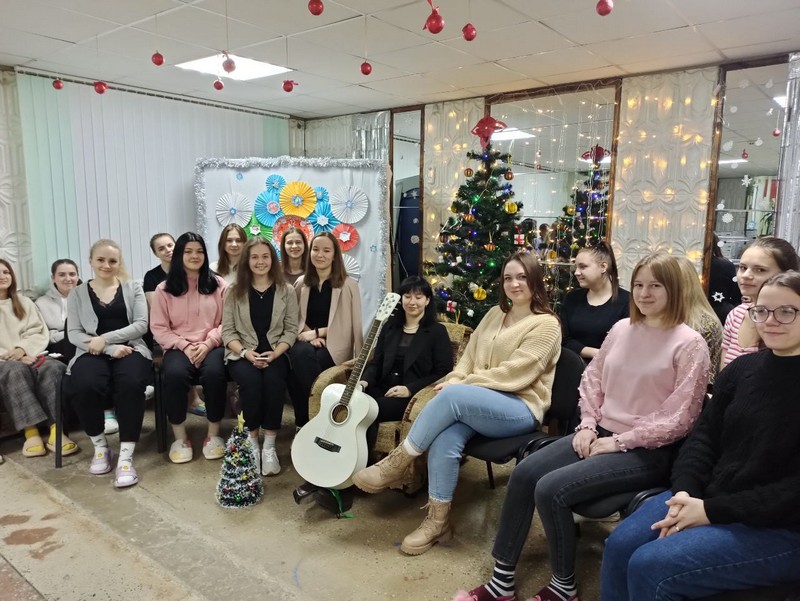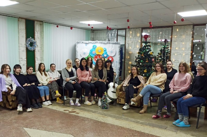 Удобно устроившись у фотозоны в холле общежития, девчонки пели песни, вспоминали наши достижения за первое полугодие: победу в спортландии, викторине по пожарной безопасности, творческих конкурсах и участие в городских мероприятиях.