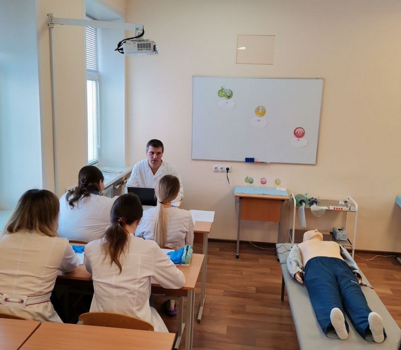 Каждый медицинский работник обязан знать, какие действия необходимо предпринять при состояниях, представляющих угрозу для жизни и (или) здоровья человека. Умение не растеряться в экстренной ситуации достигается путем специальной подготовки – теоретической и практической. В ходе открытого занятия слушатели совершенствовали профессиональные умения диагностировать жизнеугрожающие состояния у пациентов, а также успешно отработали навык выполнения сердечно-легочной реанимации на симуляционном оборудовании.
