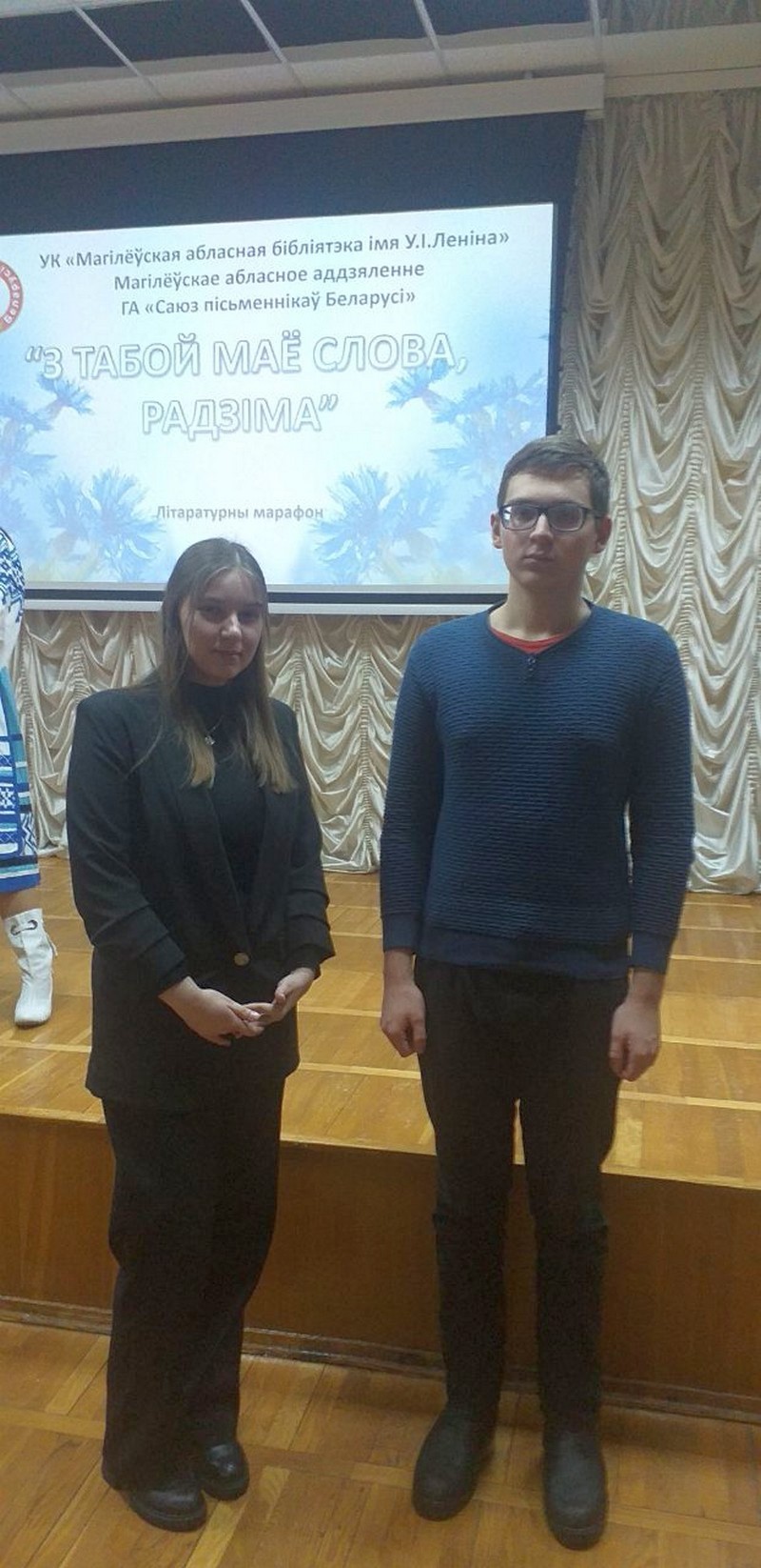 21 лютага 2023 года ў абласной бібліятэцы сумесна з Магілёўскім абластным аддзяленнем ГА «Саюз пісьменнікаў Беларусі» адбыўся літаратурны марафон «З табою маё слова, Радзіма». Распачала літаратурны марафон узорная тэатральная студыя «У кропку» (кіраўнік В.Бялова) УА «Магілёўская дзіцячая школа мастацтваў №1 імя І.М. Лучанка». Сярод удзельнікаў свята мовы былі магілёўскія пісьменнікі, прадстаўнікі навуковай інтэлігенцыі, мытні, Першай Магілёўскай натарыяльнай канторы і навучэнцы УА «Магілёўскі дзяржаўны медыцынскі каледж» – Анастасія Пашуціна, група 3Ф22, і Захар Аладзьеў, група 1МПД22, а таксама загадчык бібліятэкі медыцынскага каледжа Ляшчук Алена Васільеўна. У выканані Анастасіі Пашутінай і Захара Аладзьева прагучалі вершы Я. Купалы «Хоць ты сэрца, лопні, трэсні..», Г. Ліпчанскай «Ліс». Старшыня абласнога аддзялення Саюза пісьменнікаў Беларусі Аляксандр Казека ў сваім выступленні акцэнтаваў увагу на любоў да Радзімы, ідэй міру і стваральнай працы, як галоўных умоў развіцця беларускай дзяржавы, неабходнасць захавання беларускай мовы – духоўнай каштошнасці і скарбніцы беларускай культуры. Пісьменнік прапанаваў моладзі ў рамках Году міра і стварэння чытаць больш твораў на роднай мове, сбрабаваць свае сілы ў творчасці і быць сапраўднымі патрыётамі сваёй Радзімы.