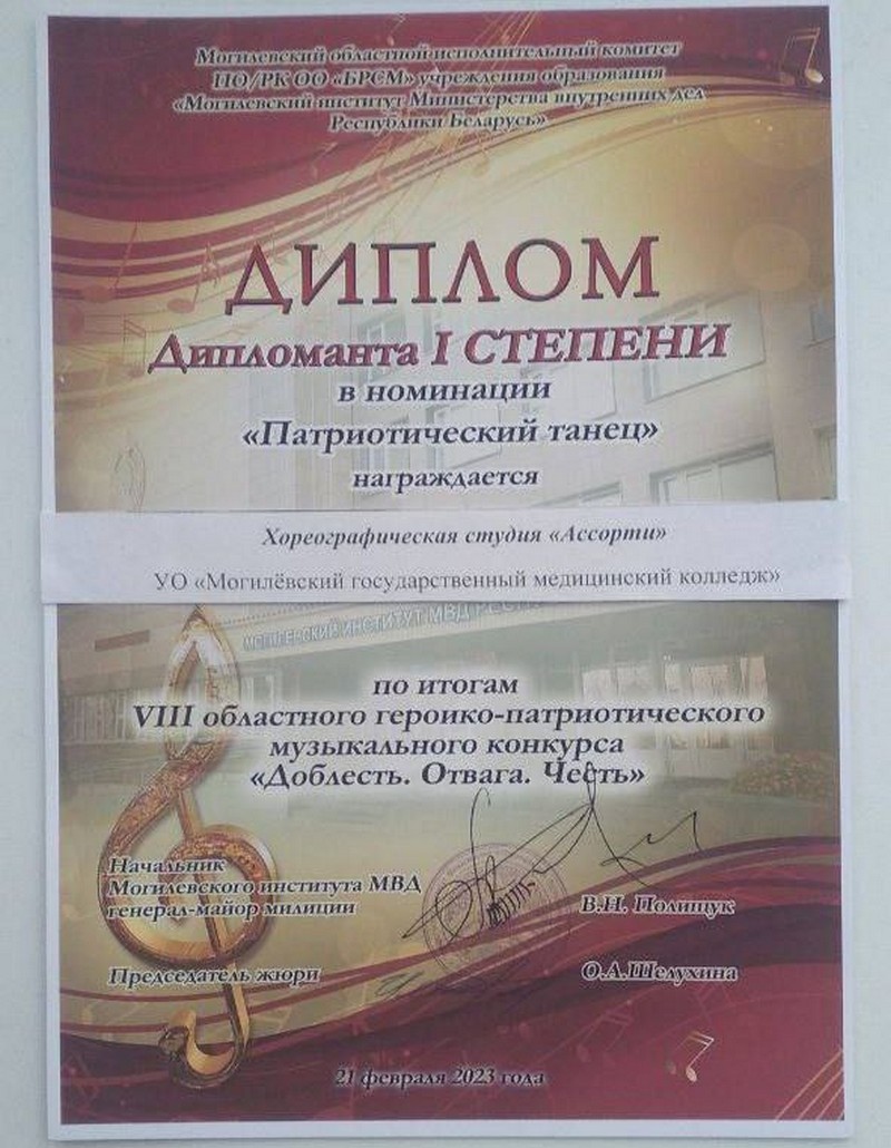 По итогам конкурса хореографическая студия Могилевского медицинского колледжа «Ассорти» была удостоена Диплома I степени!