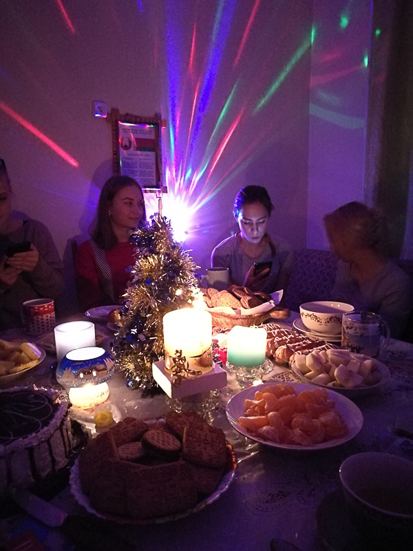 Новый год – праздник, обещающий чудо. Когда он приходит, мы ждем новых свершений, сюрпризов, чудес. Тепло поздравили друг друга с новым годом члены кружков « Шаг в будущее» и « Формула семьи» общежития №1. Колодко Карина рассказала присутствующим об интересных новогодних приметах наступающего 2019 года, а также о том, какие блюда приготовить и как создать праздничное настроение в новогоднюю ночь. Сказочная атмосфера вечера была украшена свечами и вкусными новогодними сладостями.