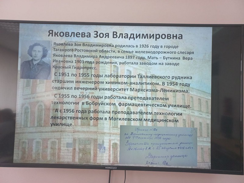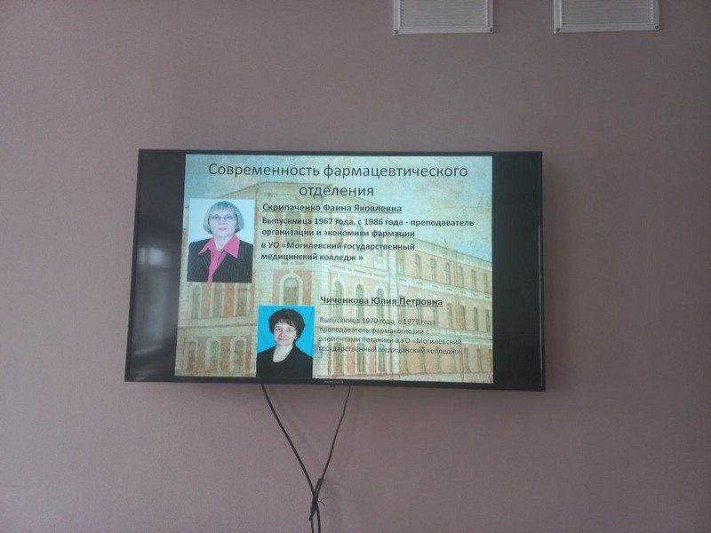 Учащиеся также узнали об истории развития Могилевской фармацевтической школы, познакомились с биографией своих преподавателей, среди которых Скрипаченко Фаина Яковлевна, Чиченкова Юлия Петровна, Хурошвили Надежда Никодимовна, Савич Оксана Вячеславовна, Костусева Светлана Николаевна.