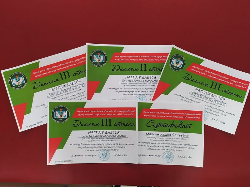 Учащиеся Могилевского медицинского колледжа 5 апреля приняли участие в онлайн-олимпиаде с международным участием по учебным предметам специального цикла специальности «Лечебное дело», организованной учреждением образования «Витебский государственный медицинский колледж имени академика И.П. Антонова».