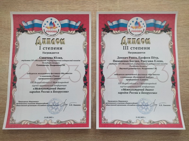 Подведены итоги ХIV Всероссийской I Международной научно-практической конференция с международным участием «Межкультурный диалог народов России и Беларуси», который проходил на базе ГБПО РМ «Ичалковский педагогический колледж». Могилевский медицинский колледж принял участие в двух предложенных номинациях.