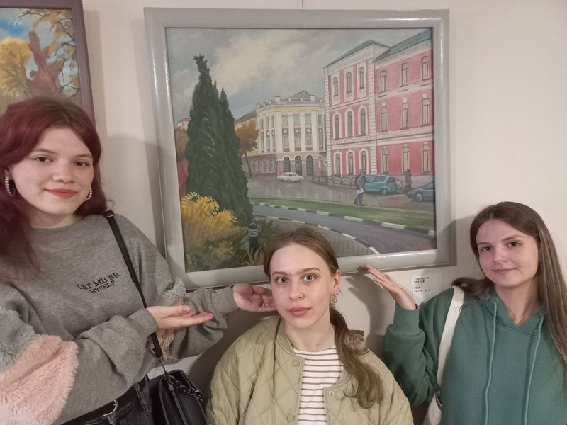 В музее также представлены изображения нашего любимого города. Все картины написаны маслом. Особый восторг у учащихся вызвала картина, на которой запечатлен любимый Могилевский государственный медицинский колледж.