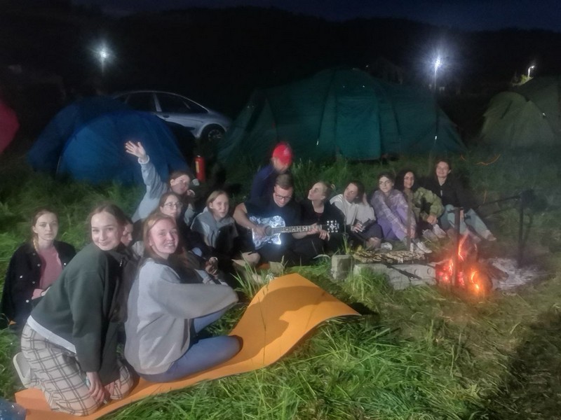 Хорошая погода, живописное место, вкусная походная еда... Всех переполняли только положительные эмоции! Возле большого костра пели песни под гитару, делились впечатлениями, рассказывали интересные истории, шутили, смеялись, танцевали. По палаткам разошлись далеко за полночь.