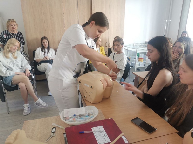 В ходе занятий ребята познакомились с техникой выполнения инъекций: внутримышечной, подкожной, внутрикожной и внутривенной.