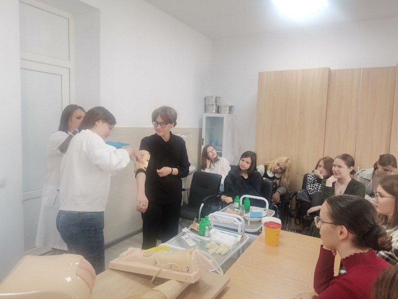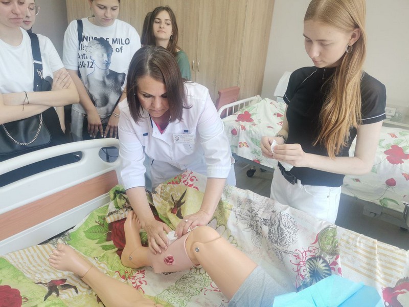 В хирургическом модуле для них был проведен мастер-класс по перевязке и обработке раны, наложению повязок.