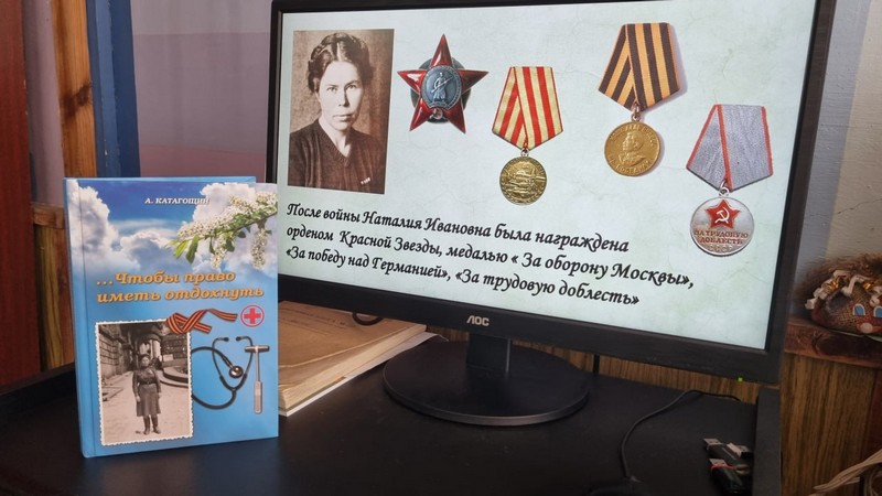 Посредством мультимедийной презентации «Путь милосердного служения» учащиеся познакомились с судьбой Наталии Ивановны, которая в годы Великой Отечественной войны в качестве военного врача прошла с госпиталями путь от Рязани до Берлина, вернула к жизни и в строй многих раненых фронтовиков.
