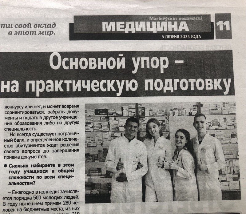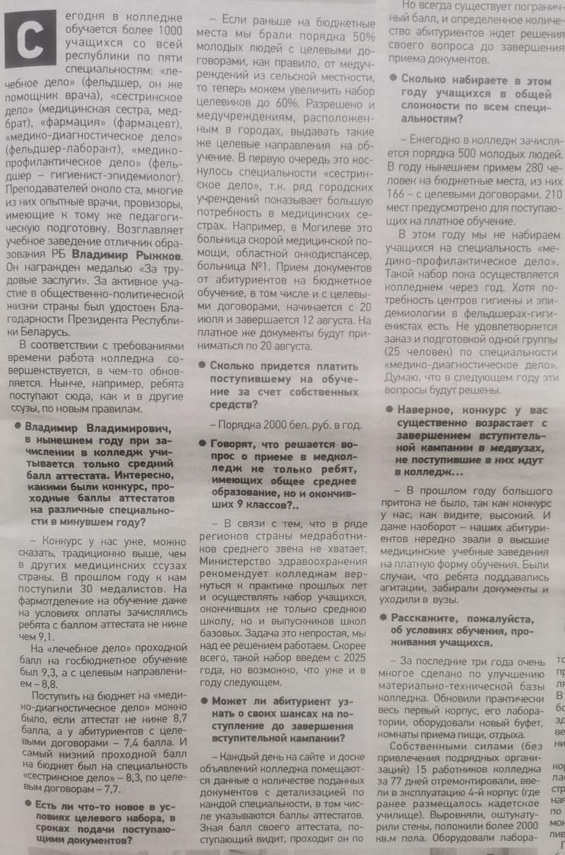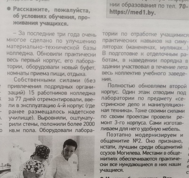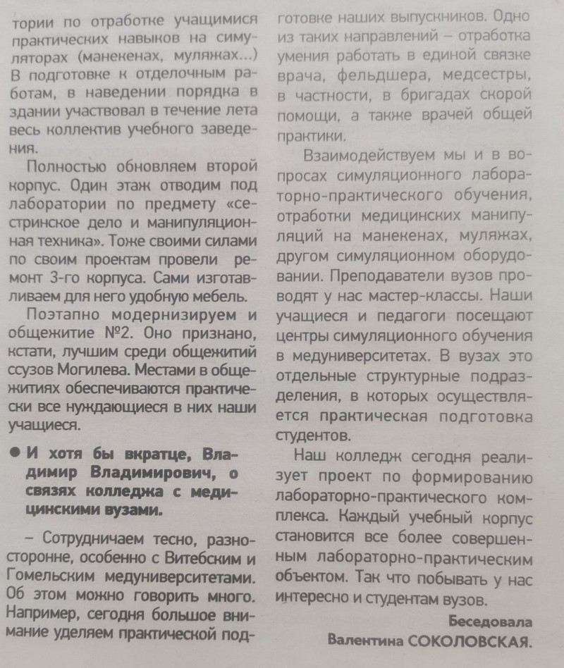 В преддверии приемной компании интересную беседу с директором колледжа организовала и провела корреспондент газеты «Могилевские ведомости» Валентина Соколовская.