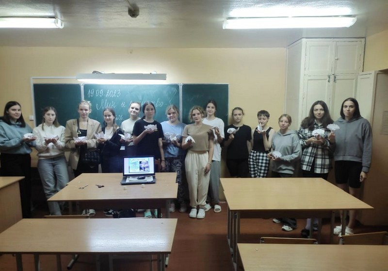 Воспитатели совместно с Анастасией Пашутиной и Яной Пронько, учащимися группы 3Ф22, провели для проживающих в общежитии диалоговую площадку «Мир и единство – сила народа». В ходе мероприятия ведущие рассказали историю возникновения этого праздника и как его отмечают в разных странах мира, про символ мира – изображение голубя, держащего в клюве оливковую ветвь, и о многом другом.