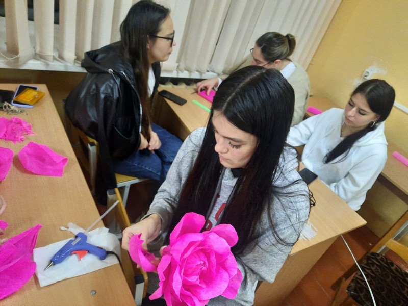 На одном из занятий девушки изготовили цветы из гофрированной бумаги для тематической фотозоны к предстоящему празднику – Дню Матери. Каждый смог проявить творчество, эмоционально расслабиться, пообщаться и весело провести время с пользой.