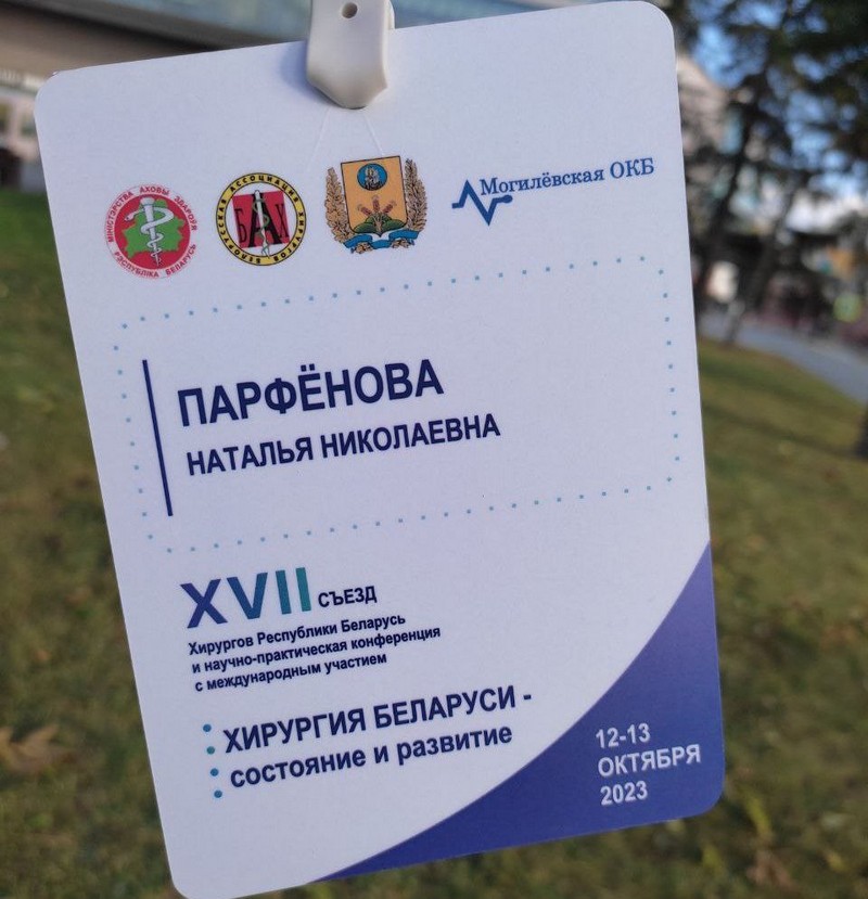 12-13 октября в Могилеве прошел ХVII съезда хирургов Республики Беларусь, в рамках которого состоялась научно-практическая конференция «Хирургия Беларуси – состояние и развитие». Участником данного мероприятия явилась преподаватель хирургии нашего колледжа Парфёнова Наталья Николаевна.