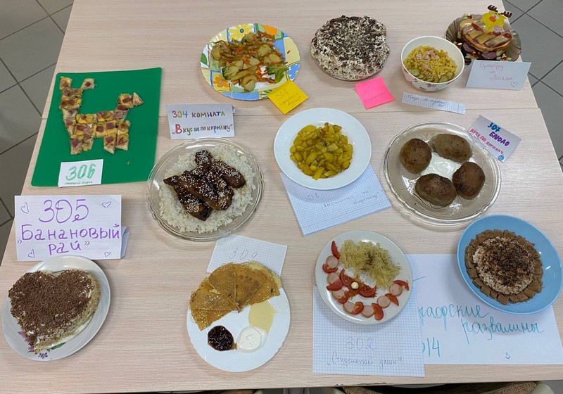 Традиционный кулинарный конкурс состоялся в общежитии №1 Могилевского медицинского колледжа. Участники конкурса показали искусство приготовления различных блюд и сервировке стола, декорировали блюда разнообразными фруктами и овощами, даже осенними листьями. А какими интересными были названия приготовленных блюд! Это композиция из бутербродов «Бутерброд от Лосяша», торт «Банановый рай» и многие другие.