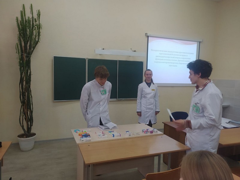 Преподаватель Могилевского медицинского колледжа Касперович Надежда Анатольевна 26 октября провела открытое учебное занятие в группе 3Ф22 по учебному предмету «Фармакология» по теме «Неопиоидные анальгетики». Будущие фармацевты узнали об особенностях применения ненаркотических анальгетиков, механизмами их болеутоляющего, противовоспалительного, жаропонижающего действия, а также об основных нежелательных побочных эффектах и противопоказаниях к применению.