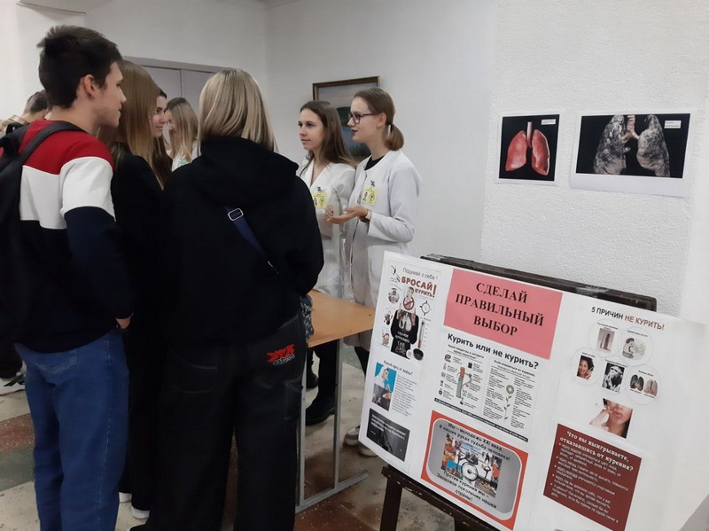 16 ноября в Международный день отказа от курения волонтеры Могилевского медицинского колледжа и педагог-психолог Ашмянская А.В. приняли участие в проведении часа здоровья «Дай шанс здоровью! Не кури!» совместно с учащимися Могилевского архитектурно-строительного колледжа. В ходе мероприятия учащиеся медицинского колледжа представляли интерактивные станции: «Фитозона», «Здоровый образ жизни», «Сделай правильный выбор».