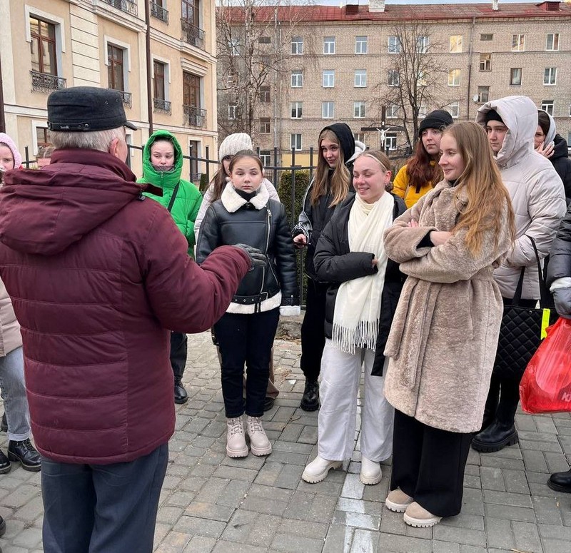 21 ноября руководитель по военно-патриотическому воспитанию Щербинов Александр Сергеевич и куратор группы 1Ф23 Захарьева Мария Петровна провели для учащихся пешую экскурсию по историческому центру Могилева с обзором памятников светской и храмовой архитектуры.
