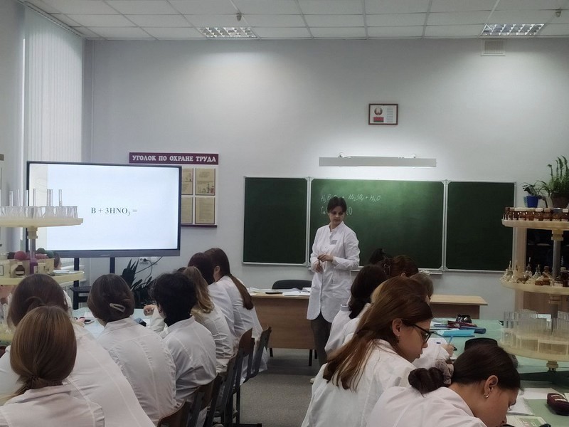 На фармацевтическом отделении Ольга Игоревна Черткова провела открытое учебное занятие по предмету «Неорганическая химия» по теме «Элементы главной подгруппы III и IV группы».