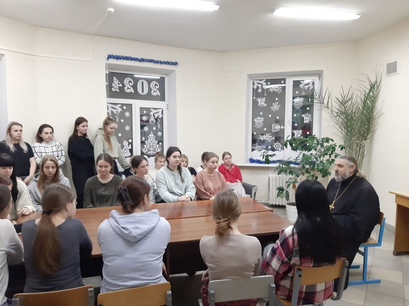 В ходе беседы были затронуты важные для молодых людей темы, касающиеся ответственного отношения к выбранной профессии, семейных ценностей, общения друг с другом без употребления матерных слов. Священник доступно и ненавязчиво убеждал ребят в важности ведения здорового образа жизни, соблюдения норм морали. На примерах из жизни говорил о том, что каждому необходимо думать о последствиях своих поступков, быть добрым и милосердным по отношению к людям.