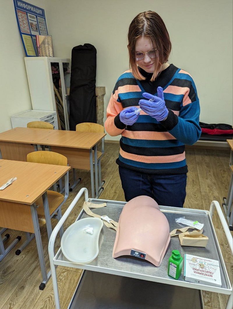 Учащиеся освоили практические навыки наблюдения за пациентами, измерение температуры, артериального давления, подсчет дыхания и пульса, технику подкожной и внутримышечной инъекций.