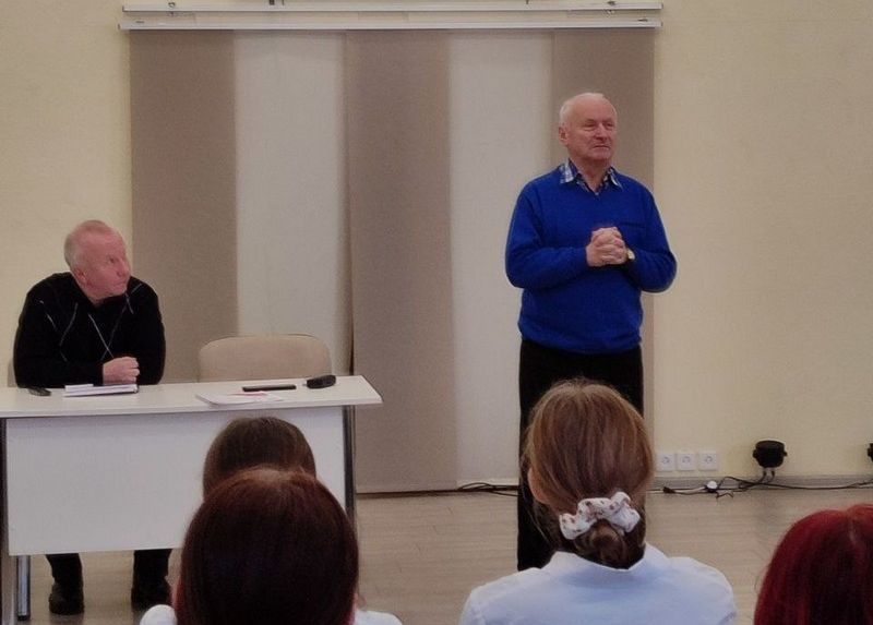 21 декабря в рамках реализации информационно-образовательного проекта «Школа Активного Гражданина» в Могилевском медицинском колледже состоялась встреча с актером Могилевского областного драматического театра, Заслуженным артистом Республики Беларусь – Галец Василием Николаевичем. Тема встречи: «Родина моя в лицах. Хранители Прекрасного (о деятелях культуры и искусства.)»