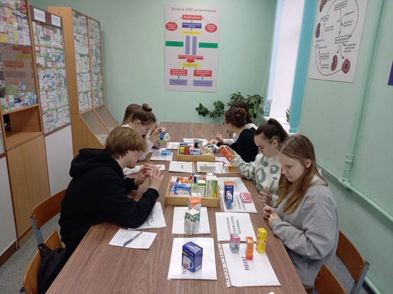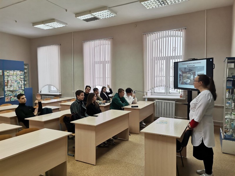 Старшеклассникам предоставилась возможность включиться в образовательный процесс колледжа и побывать на учебных занятиях на медицинском и фармацевтическом отделениях: анатомия, терапия, хирургия,