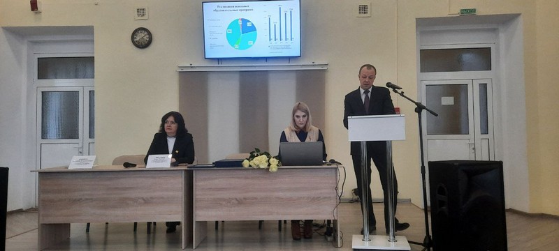 Директор колледжа Рыжков В.В. выступил перед педагогическим коллективом с докладом о результатах деятельности колледжа в 2023 году и задачах на 2024 год.