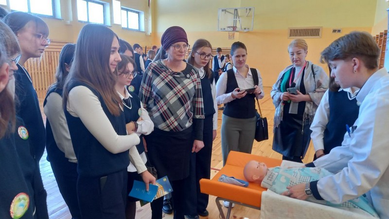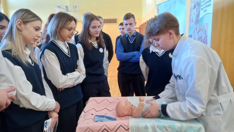 Эти девчонки сами являются выпускницами школы и гимназии Мстиславля, поэтому школьникам было очень интересно послушать своих старших товарищей, узнать, чему они уже научились в медицинском колледже, и попробовать себя в роли медработника. С гордостью на своих выпускниц смотрели и преподаватели учреждений образования.