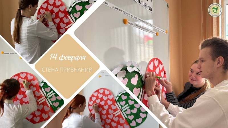 14 февраля в Могилевском медицинском колледже работала стена признаний, на которой каждый желающий мог оставить добрые слова и пожелания своим друзьям, одногруппникам, коллегам, родному городу или любимой Беларуси!