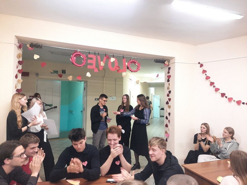 Каждый нашел себе пару на этот вечер и смог проявить эрудицию в ряде конкурсов: «Знание – сила», «Найди половинку», «Стрела Амура», «Комплименты». Немного истории и традиций этого романтического праздника, игра на гитаре и ритм сердец сложились в единую композицию, которая оставила след в душе каждого участника вечера.