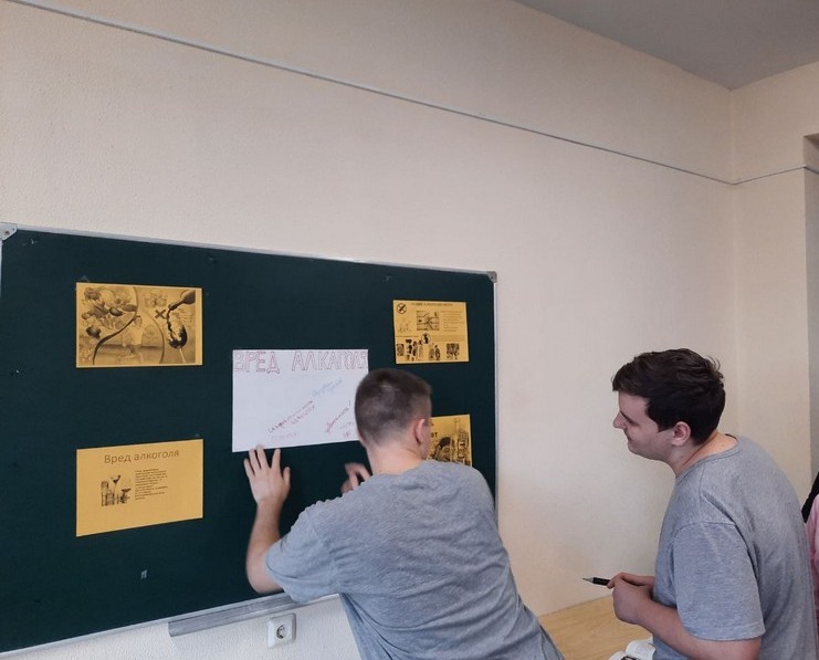 В заключение ребята смогли закрепить полученные знания, ответив на вопросы викторины «Алкогольный яд». А свое негативное отношение к этой пагубной привычке выразили надписями на плакате.
